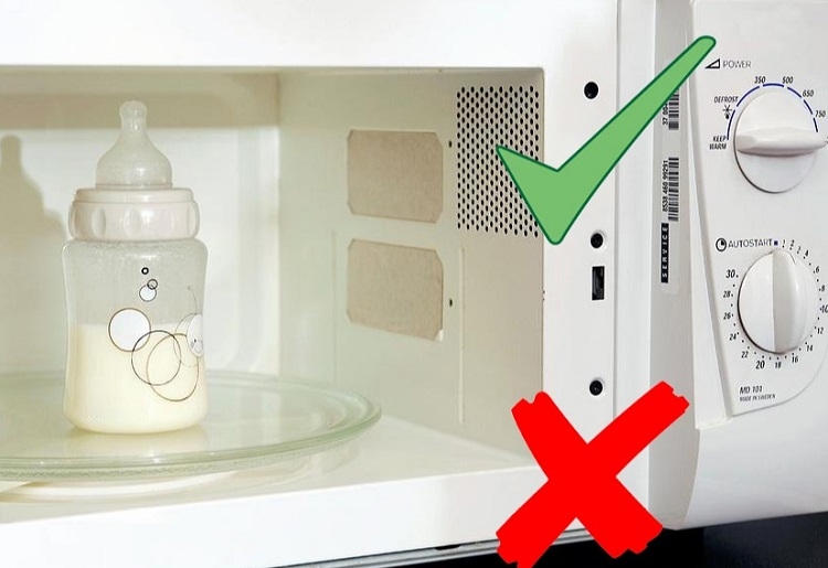 Dùng lò vi sóng: Sóng vi ba khiến sữa nóng không đều, dễ gây bỏng miệng bé và làm biến đổi dưỡng chất.